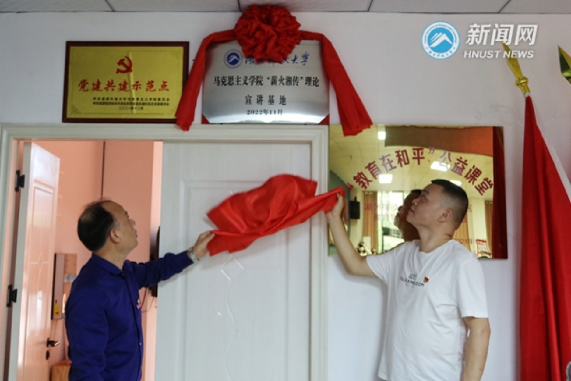 ▲刘图其、李文斌为“薪火湘传”宣讲基地揭牌