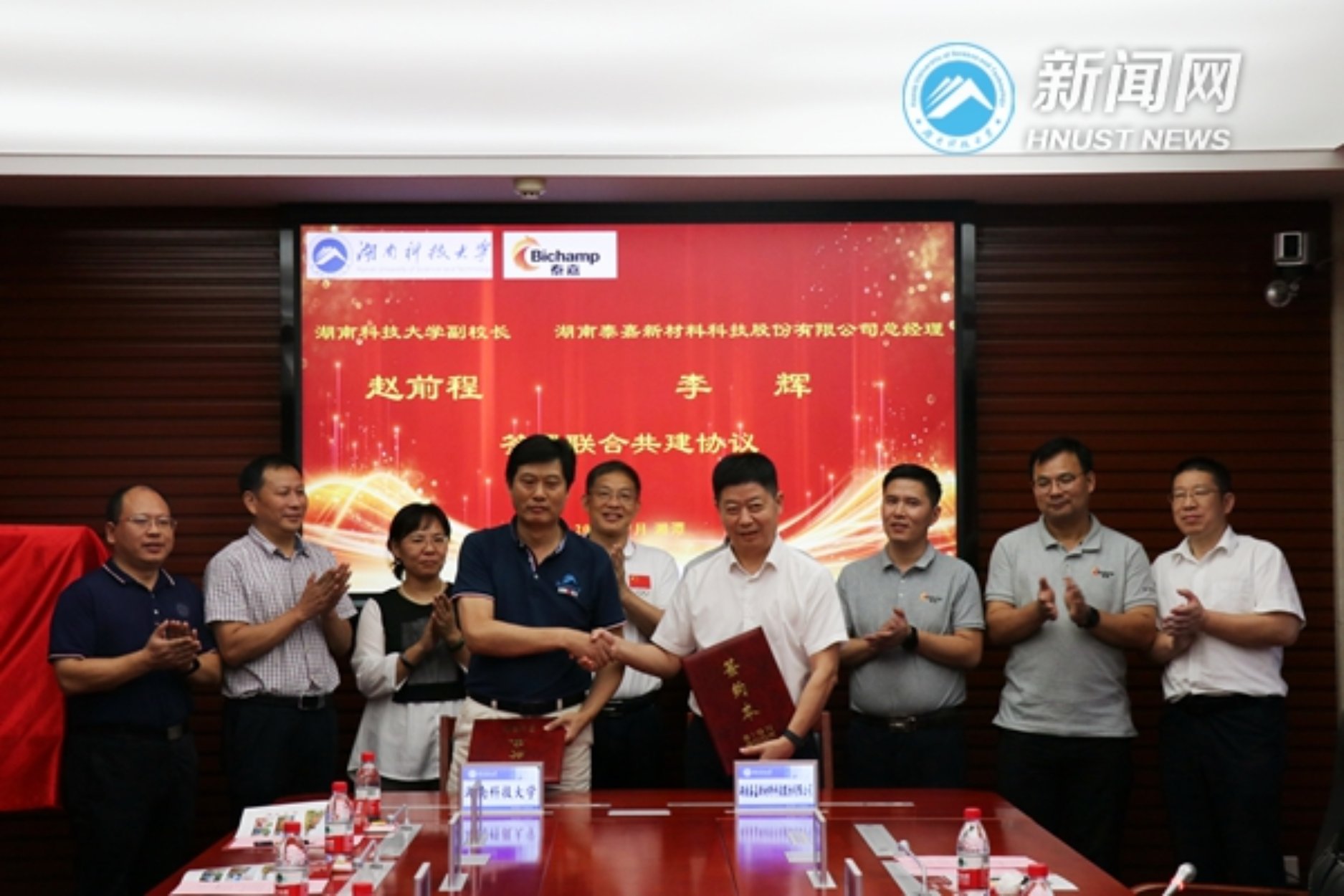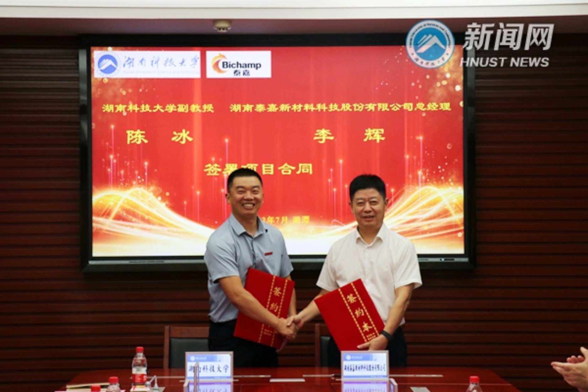 会上,唐亚阳和方鸿为“湖南科技大学-湖南泰嘉新材料股份有限公司智能低碳锯切技术与装备研究院”揭牌;赵前程和李辉签署关于联合共建“湖南科技大学-湖南泰嘉新材料股份有限公司智能低碳锯切技术与装备研究院”的协议;陈冰副教授和李辉作为校企双方负责人签署技术开发项目合同。双方还就进一步推动合作进行了广泛而深入的交流。
