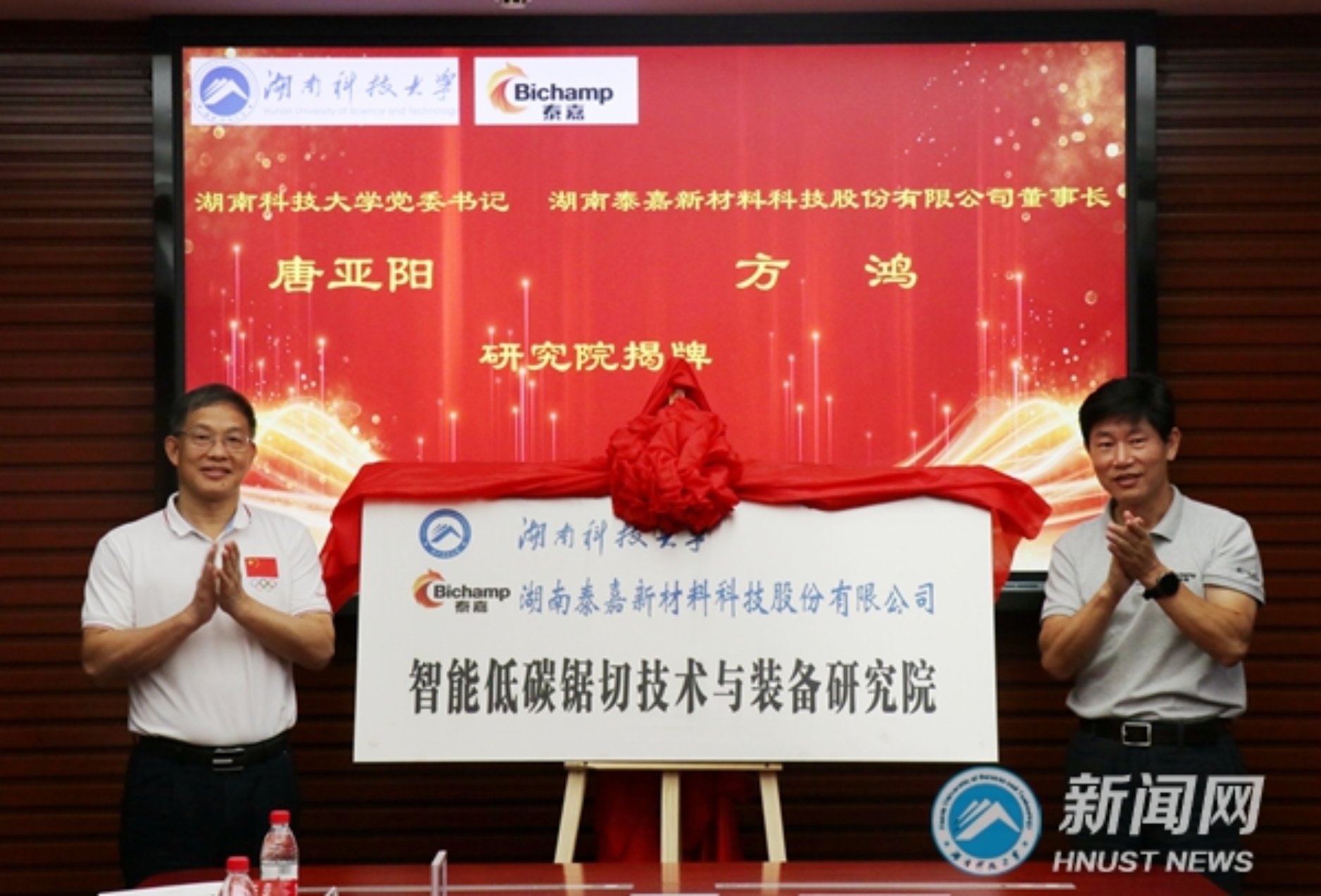 ▲“湖南科技大学-湖南泰嘉新材料股份有限公司智能低碳锯切技术与装备研究院”揭牌