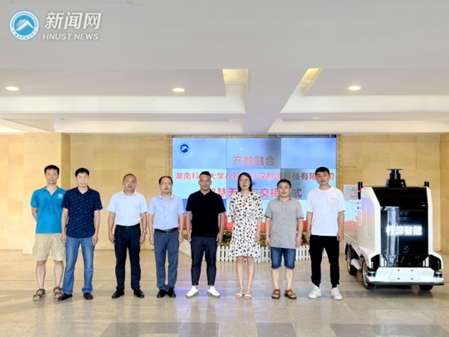 ▲机电工程学院与长沙行深智能有限公司举行智慧无人驾驶车交接仪式