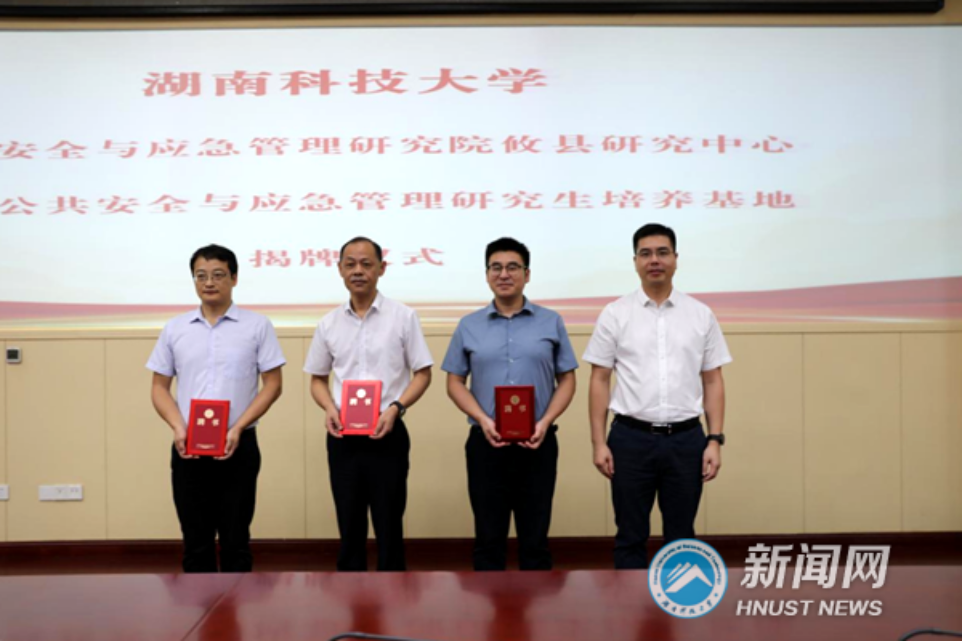 8月25日,湖南科技大学公共安全与应急管理研究院攸县研究中心、攸县公共安全与应急管理研究生培养基地揭牌仪式在湖南省攸县东城新区举行。揭牌仪式上,省应急管理厅党委委员、副厅长李兵荣,县委书记李鹏程为湖南科技大学公共安全与应急管理研究院攸县研究中心揭牌;我校副校长贺泽龙,县委副书记、县长武挪强为攸县公共安全与应急管理研究生培养基地揭牌;武挪强为湖南科技大学公共安全与应急管理研究院有关专家颁发专家聘书。