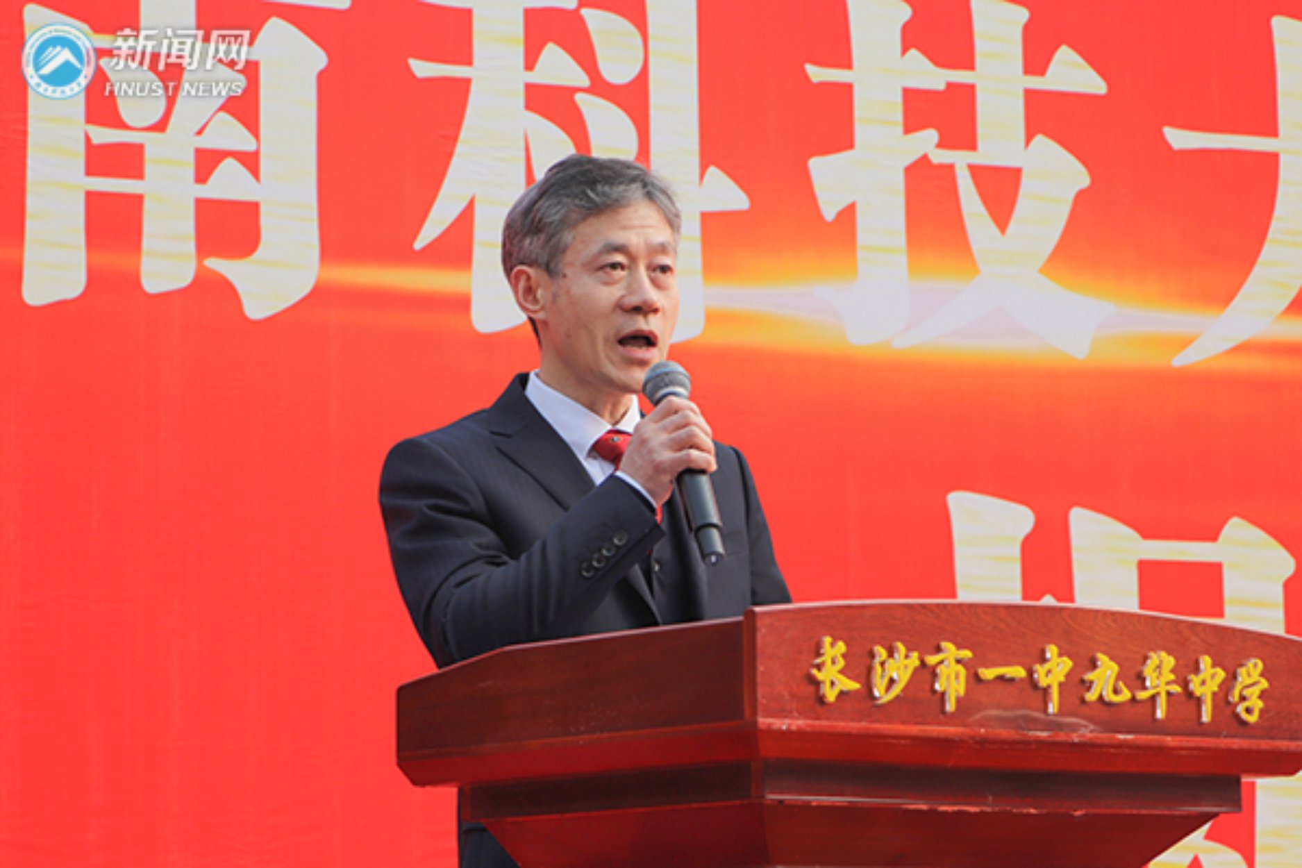 湖南科技大学附属九华中学校长谢晓红作题为“第二次奔赴,为了春天的约定”主题讲话,他在讲话中简要介绍了学校开办六年来取得的各项重大成就,并表示:“在这个春天,随着湖南科技大学与湘潭经开区校地共建的深入开展,我校正式成为湖南科技大学附属中学,这是我校办学史上具有里程碑意义的大事,将促使学校实现跨越式发展。”为更好助推两校合作高质量发展,借此机会,他向唐亚阳和黄韧汇报,并提出以下两点请求:一是做好科技创新人才早期培育,希望与我校合作设置如物理、计算机科学等方向课程,采用高中基础课程“加速学习”与在科大选学相关专门课程和探究课程相结合的模式进行培养。二是抓好高中这一基础教育与高等教育衔接的关键阶段,关注有潜质学生的兴趣激活与志趣引领,夯实“全人”发展根基,他盼望以唐亚阳书记、万步炎教授为代表的科大名师来校开设讲座,启发、引领学生了解大学通识教育的内涵,培养做学问的学术道德、学术素养。