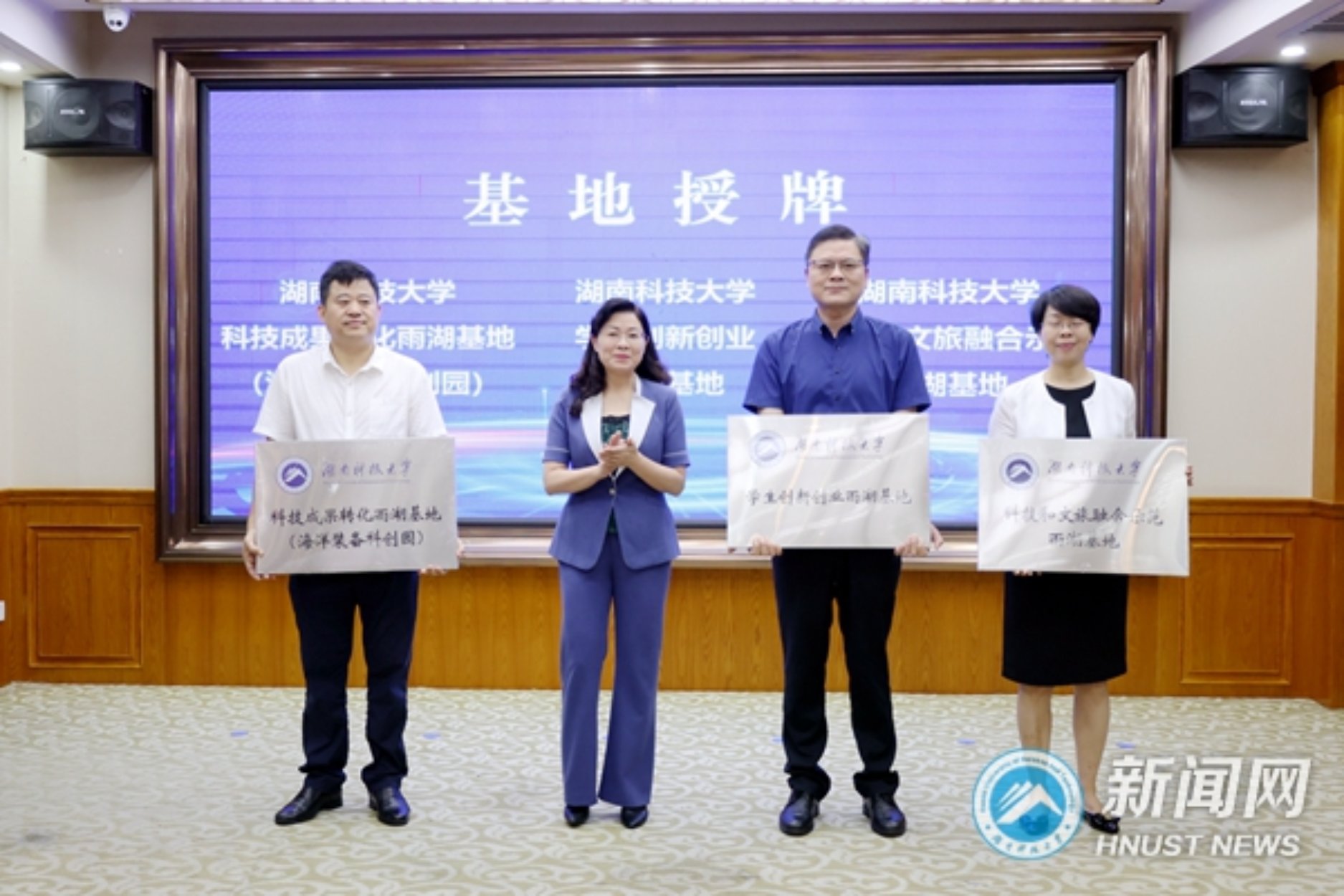 当天,我校机械设备维护湖南省实验室与江南工业集团、楠竹山镇签订校地企合作协议,我校与江南工业集团、雨湖高新区、区文旅广体局就产学研合作项目签约。会议为湖南科技大学科技成果转化雨湖基地、湖南科技大学学生创新创业雨湖基地、湖南科技大学科技和文旅融合示范雨湖基地授牌。