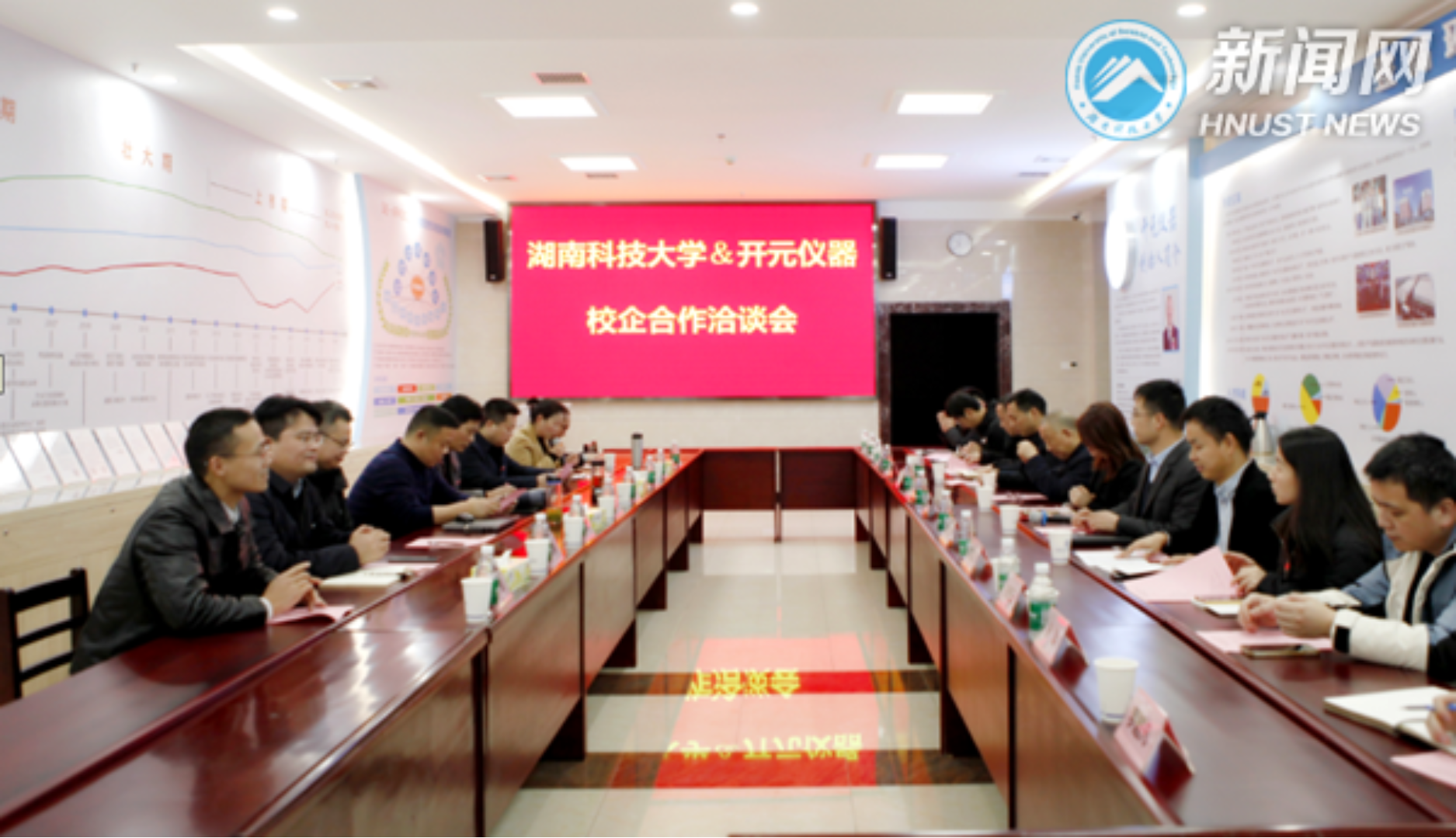 会上,赵前程充分肯定了开元仪器30多年来取得的成绩,并介绍了湖南科技大学办学情况,指出双方的合作有前期基础,也将有美好前景。罗建文对赵前程一行的来访表示欢迎,并简要介绍了公司发展历程、发展规划和企业文化,期待双方能达成更多更深入的合作。双方就相关合作项目进行了交流探讨。