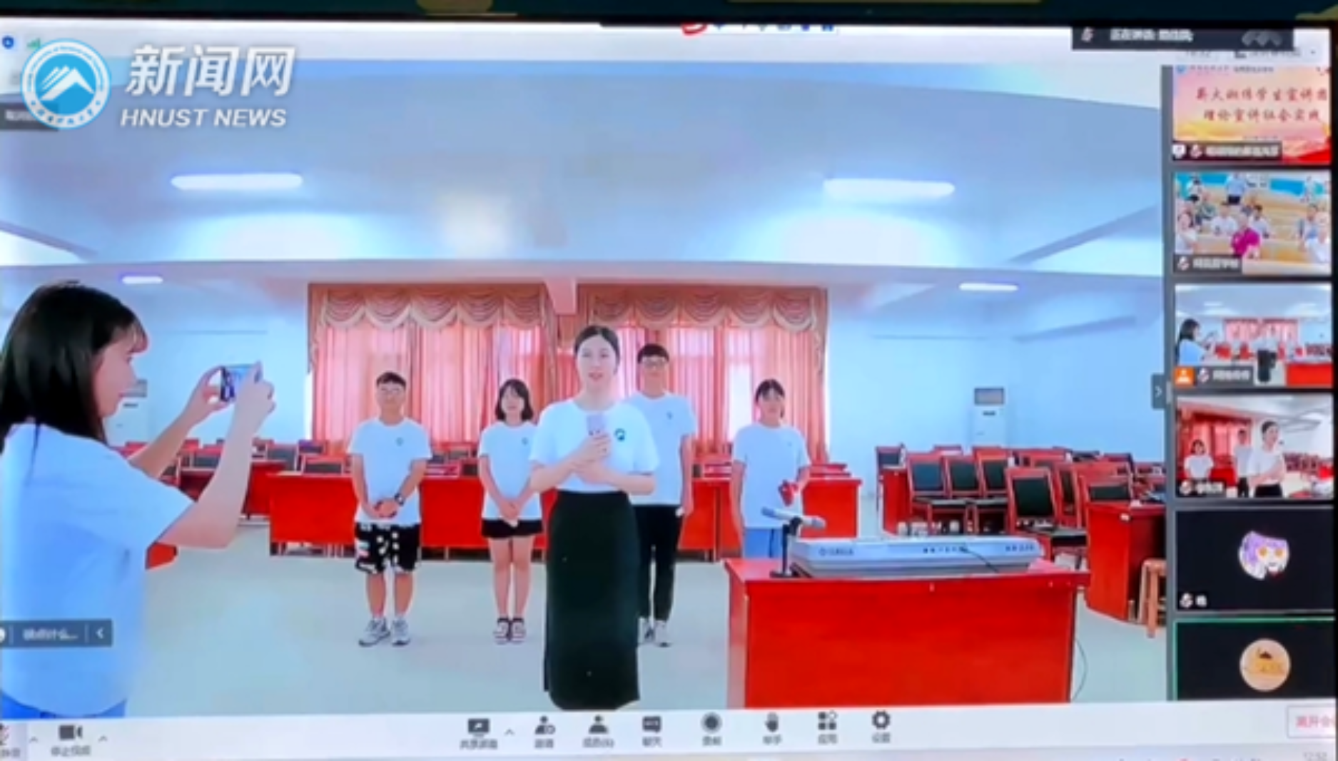 随后,我校马克思主义学院“薪火湘传”学生宣讲团成员通过云端向孩子们进行了党史知识宣讲,表演了结合孩子们的特点,融党史知识、党的理论、趣味性于一体的自编《青春之问》《中国精神》节目,赢得的了孩子们的热烈掌声。