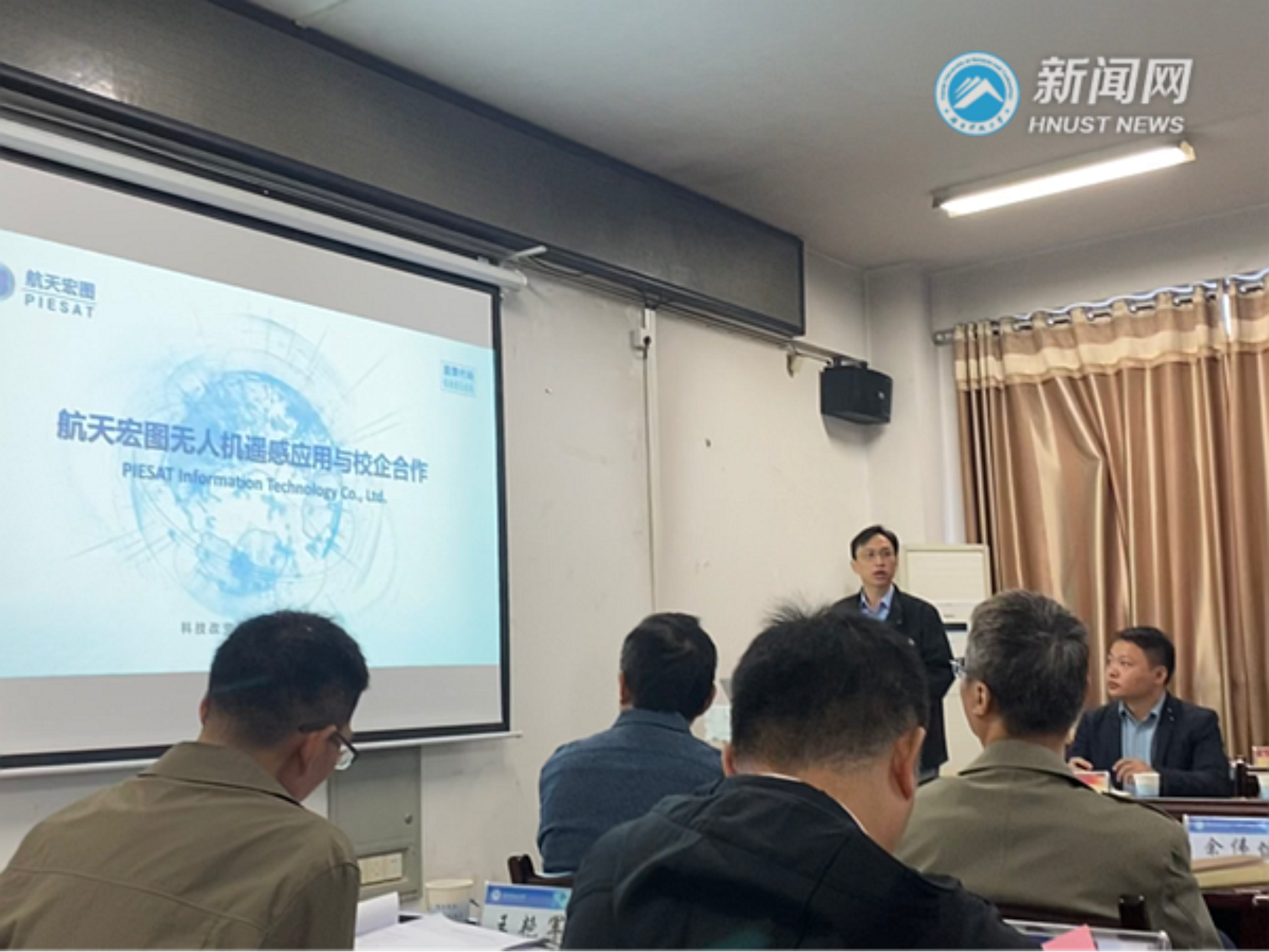 随后,航天宏图湖南公司技术部总工郭山山介绍了公司的技术实力,重点讲解了校企合作的基础——国产遥感与地理信息一体化软件PIE;航天宏图湖南公司无人机事务部总监徐彪介绍了无人机遥感应用与校企合作的基本情况;航天宏图湖南公司技术部专家彭鑫对智慧校园数字孪生及虚拟仿真教学的解决方案作讲解;实验室副主任王艳军教授汇报了我校测绘遥感地理信息领域的科研成果。