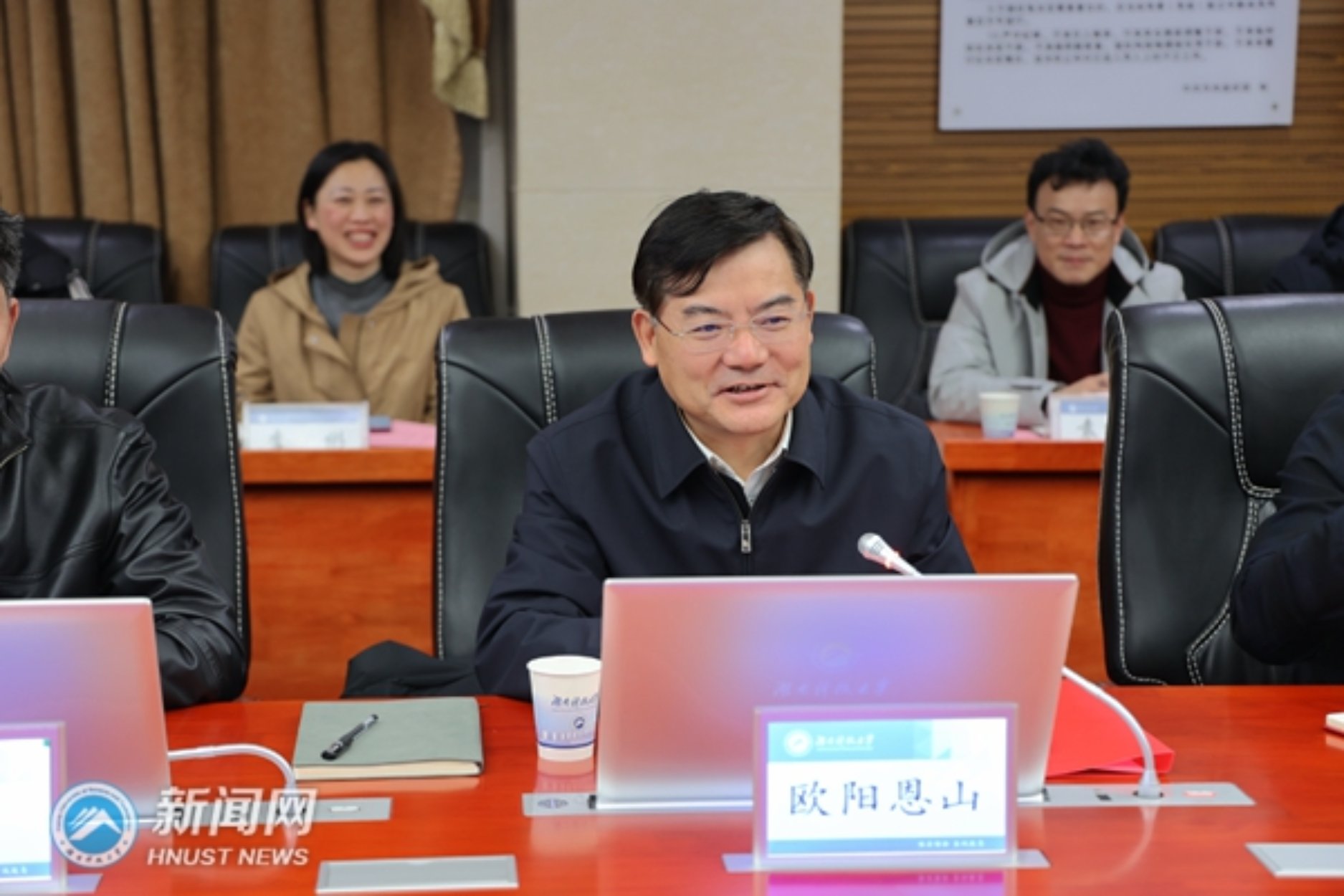 2月15日下午,为推进校企深度合作,中国联通湖南分公司党委书记、总经理欧阳恩山一行来我校调研交流。校党委书记唐亚阳,党委办公室主任尹风雨及网络信息中心主任阳锋等陪同调研,共观智慧校园建设成果。调研后于立德楼601会议室举行交流座谈会,由副校长廖湘岳主持会议。