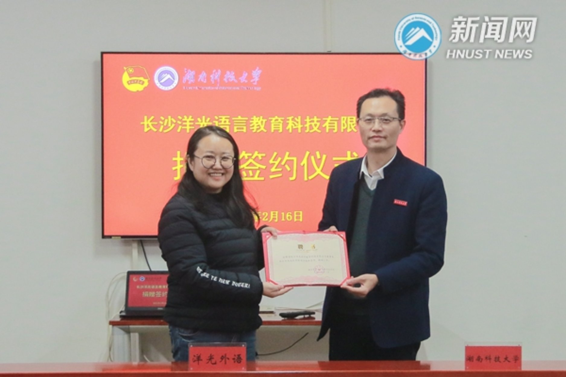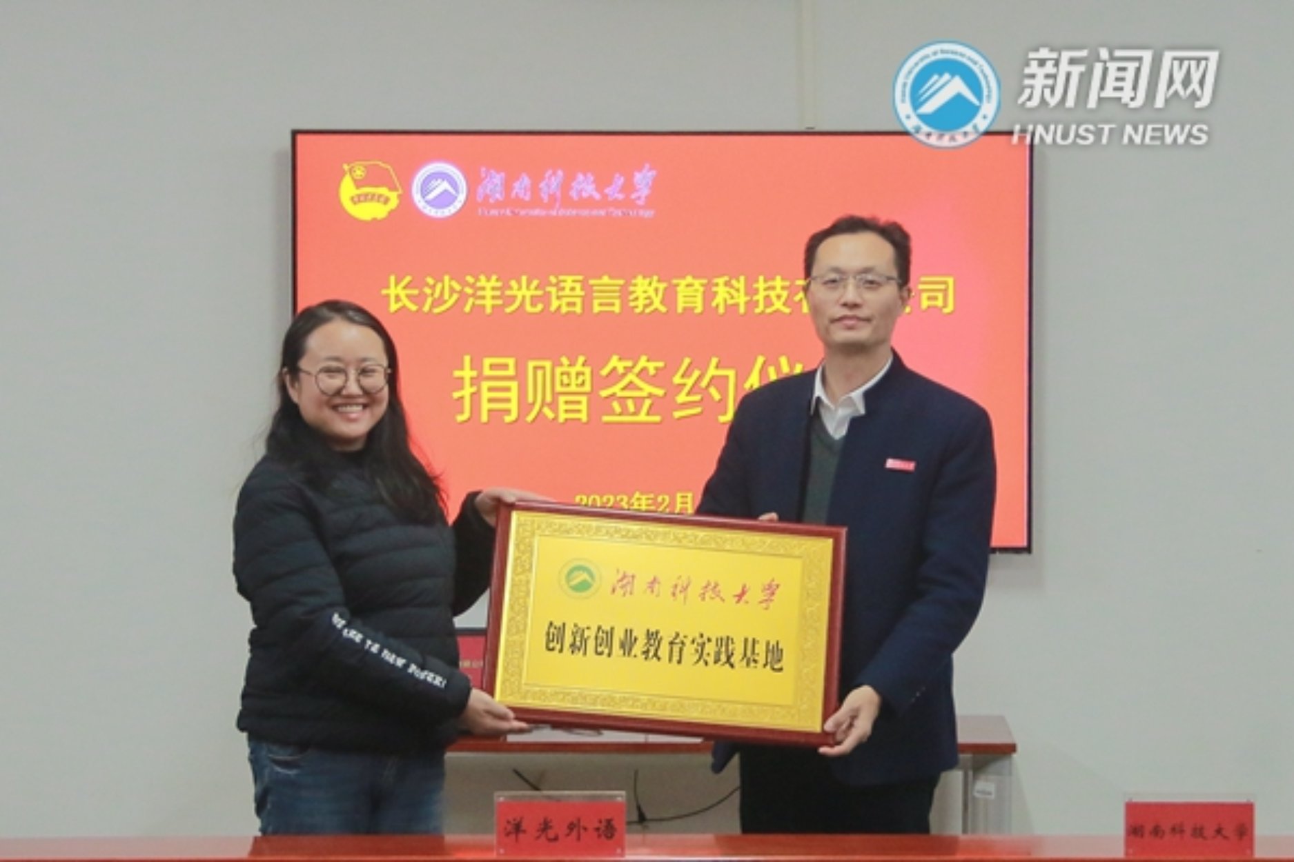 为助力大学生创新创业,2月16日,长沙洋光语言教育科技有限公司向我校捐赠50万元助力我校创新创业工作,并与我校签订大学生创新创业教育实践基地共建协议。
