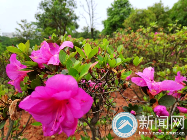 扩建后的杜鹃园,增大了总占地面积,花园内部的路径得到修缮、布局更加有序。新建成的杜鹃园杜鹃花种类繁多,红色白色的杜鹃花竞相开放,清风吹过朵朵鲜花为校园增添一份生机。此次扩建还将之前高的灌木丛移植成了更加整齐美观的草丛,从杜鹃园的入口望去,草丛与色彩鲜艳的花朵相互交错,构成一幅风景画。